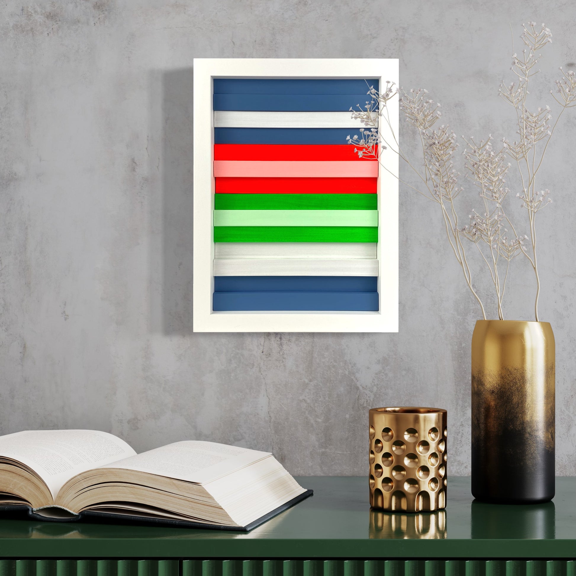 Materials: Acrylic on poplar slats.